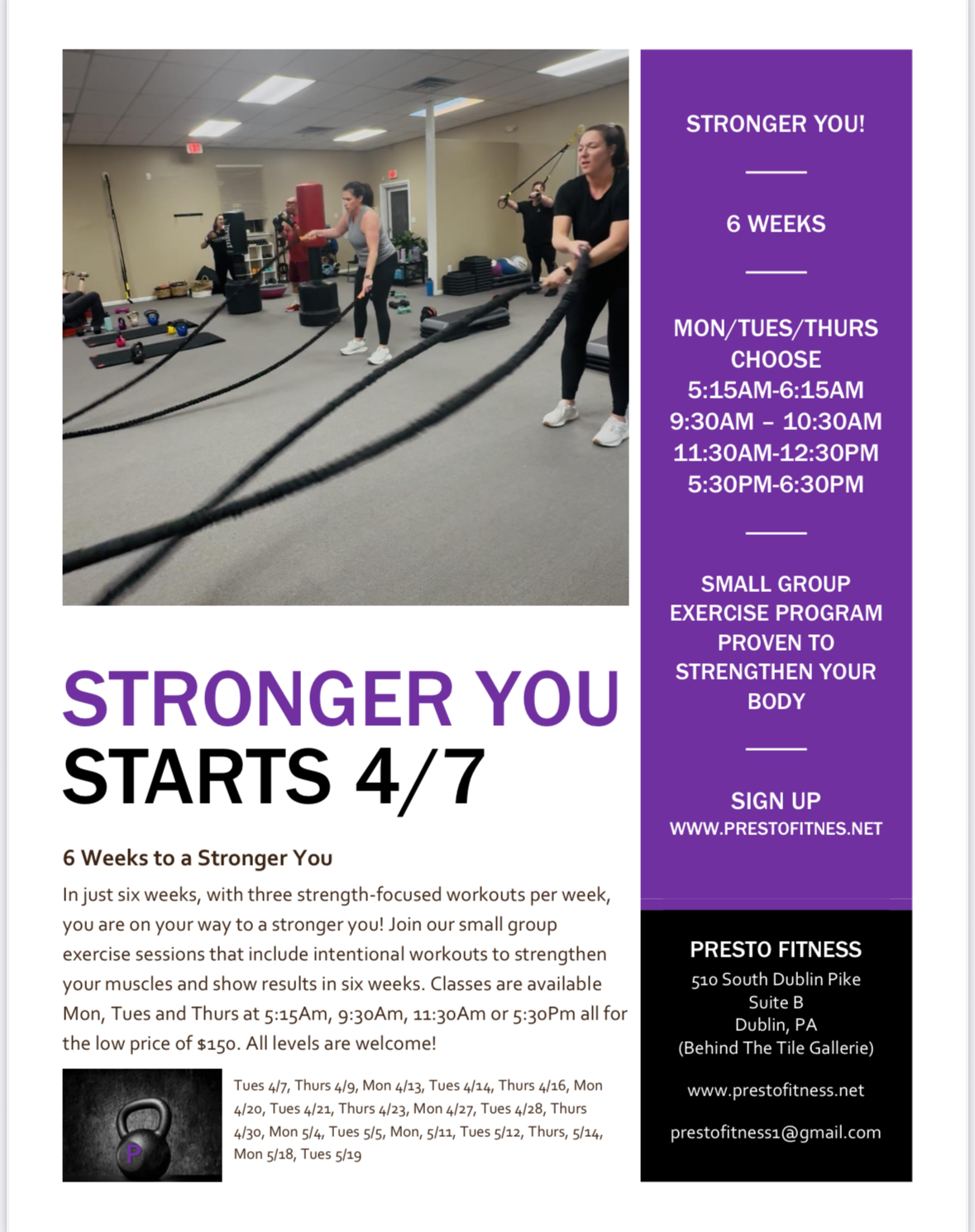 In just six weeks, with three strength-focused workouts per week, you are on your way to a stronger you! Join our Small Group Exercise sessions that include intentional workouts to strengthen your muscles and show results in six weeks. Classes are available on Mon, Tues, and Thurs at 5:15 am, 9:30am, 11:30 am or 5:30pm all for the low price of $150. Don't miss out on the chance to enhance your training with this exercise plan proven to strengthen your body. All levels are welcome.